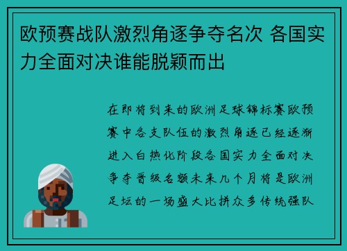 欧预赛战队激烈角逐争夺名次 各国实力全面对决谁能脱颖而出